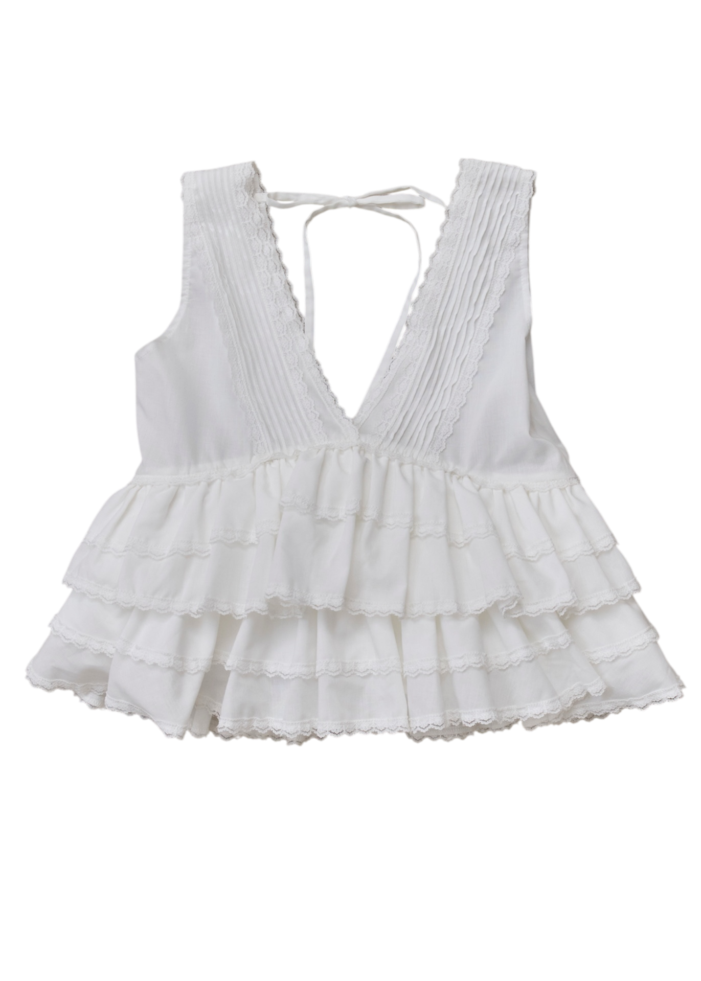 立体的に重ねられたティアードフリルが、華やかさと女性らしさを演出するBallerina seriesトップス。