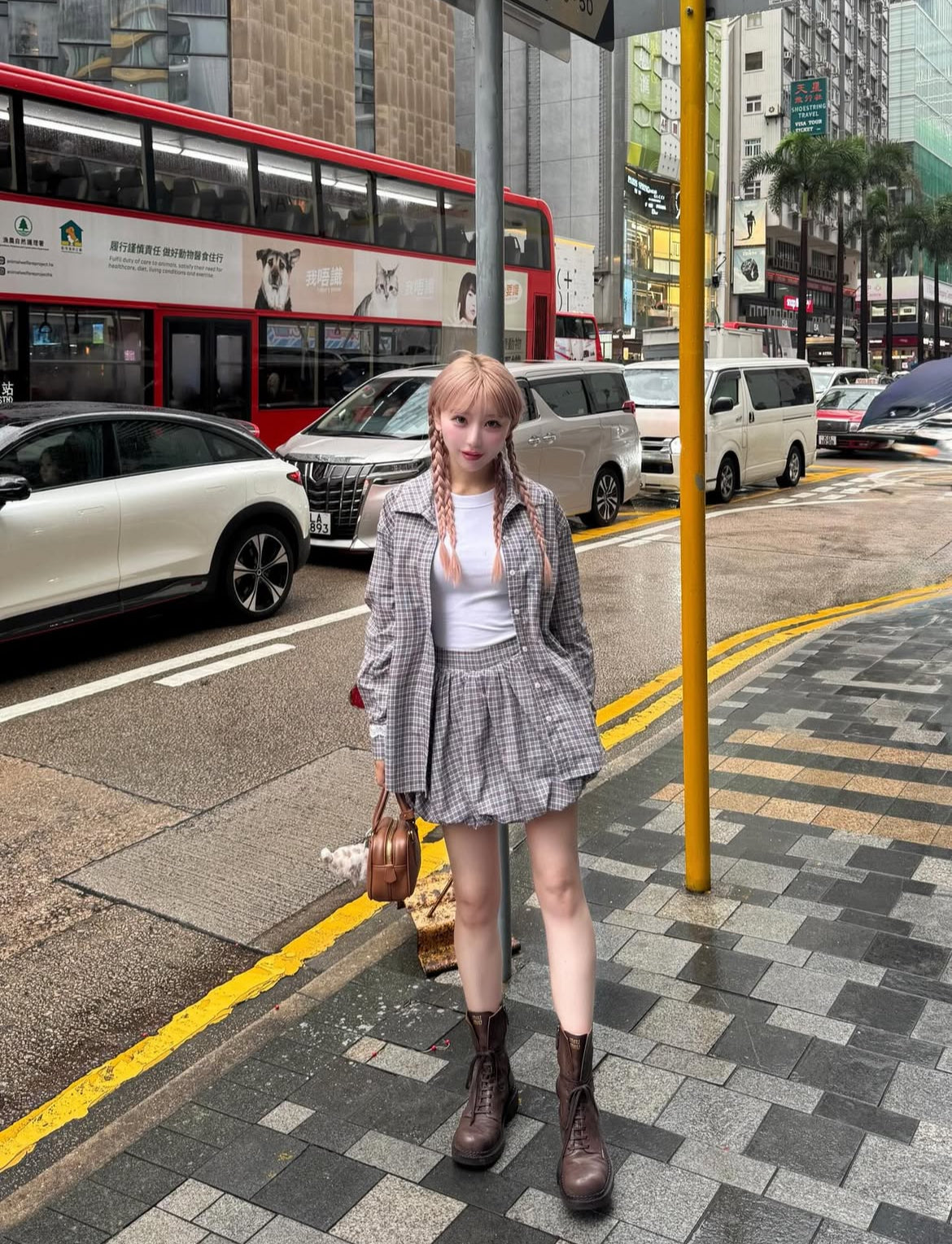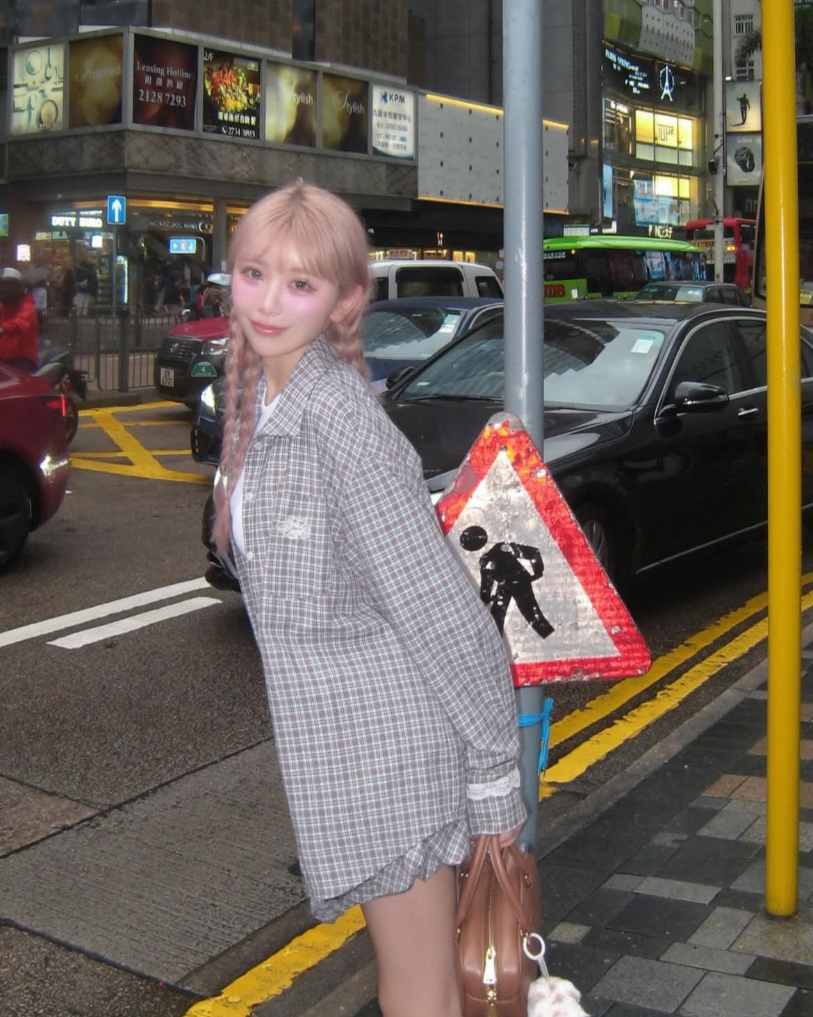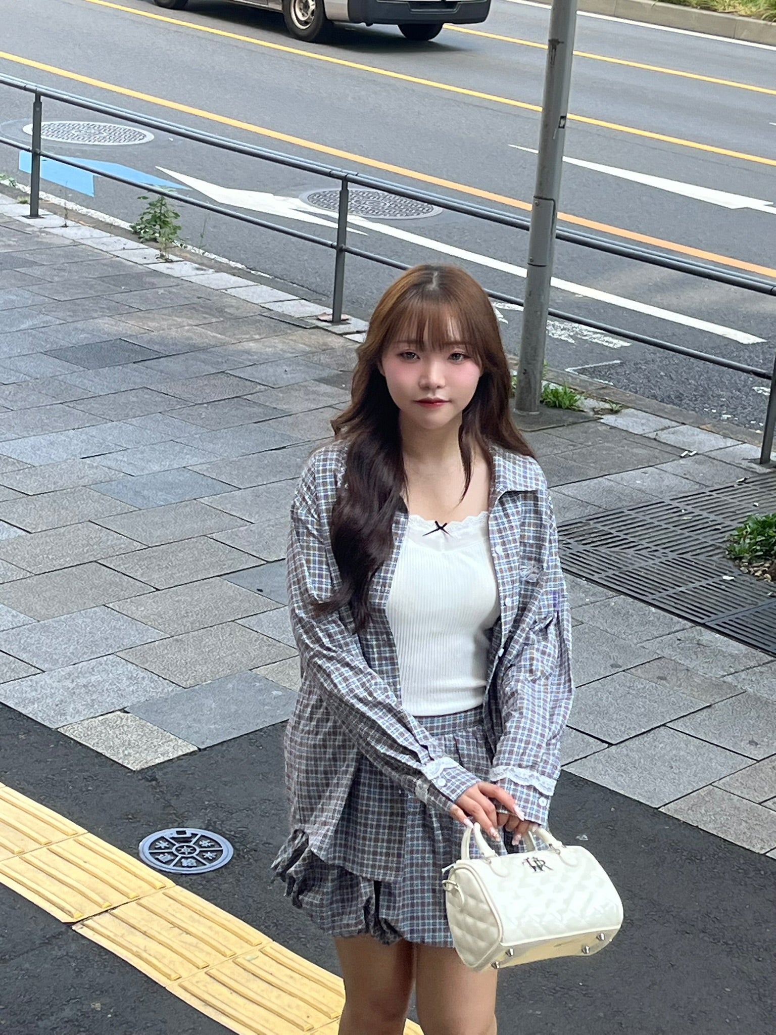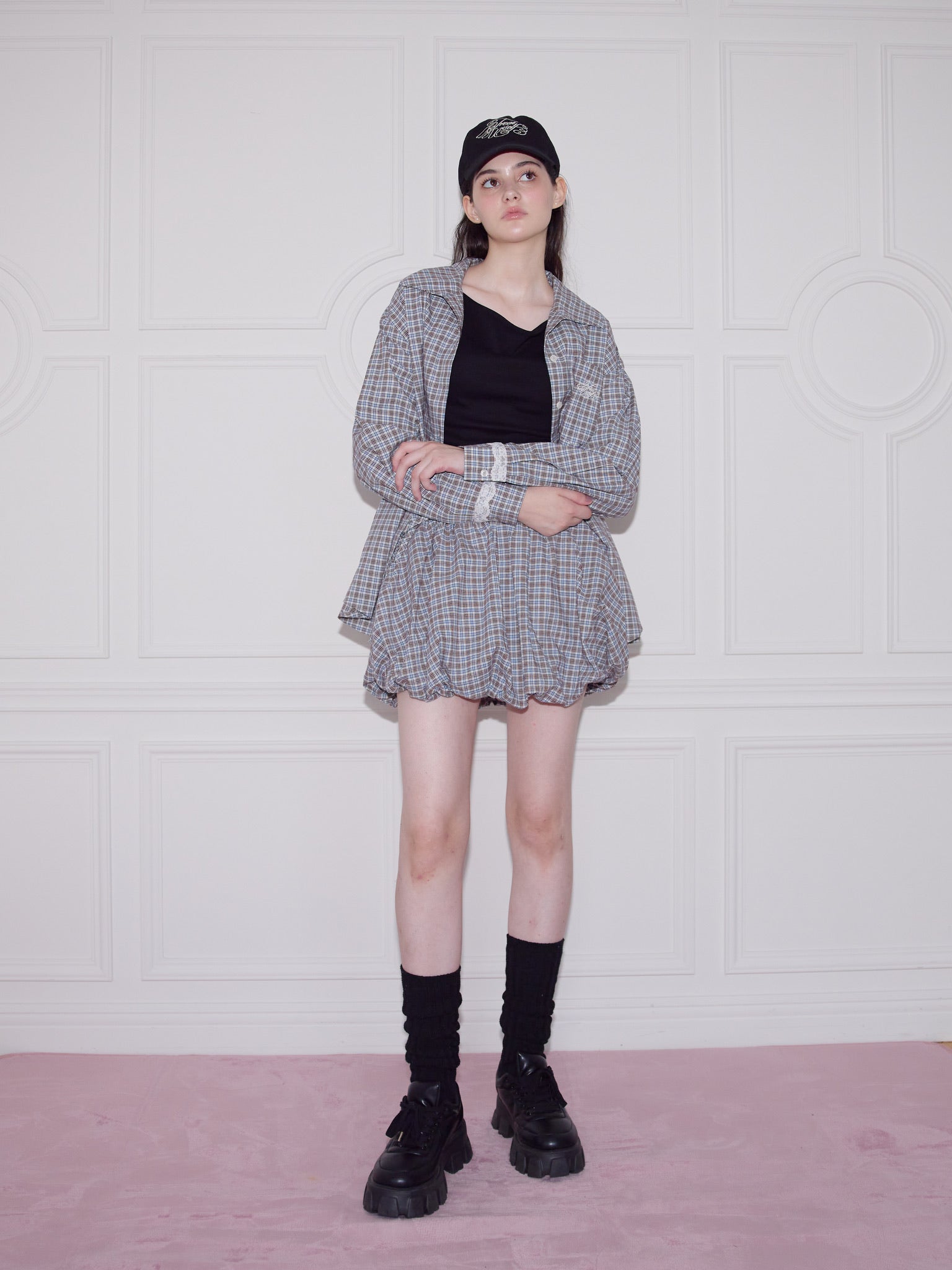 The relaxed oversized shirt paired with softly balloon-shaped shorts strikes the perfect balance between sweetness and effortless charm.