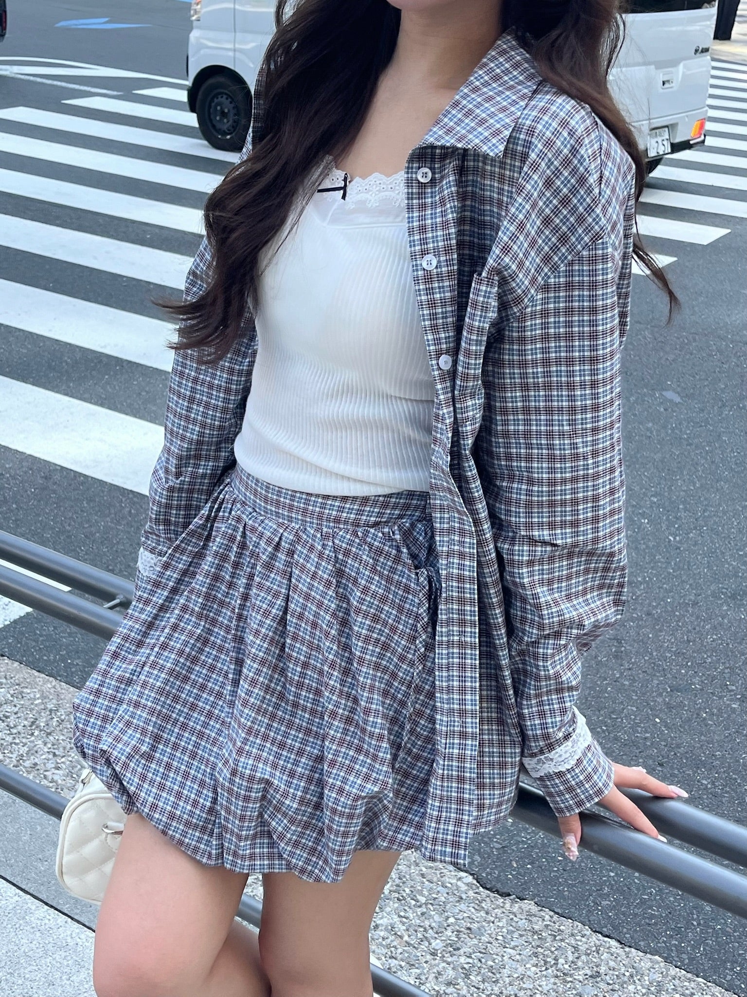 クラシカルなチェック柄を、Treatらしい軽やかなムードでアップデートしたセットアップ。