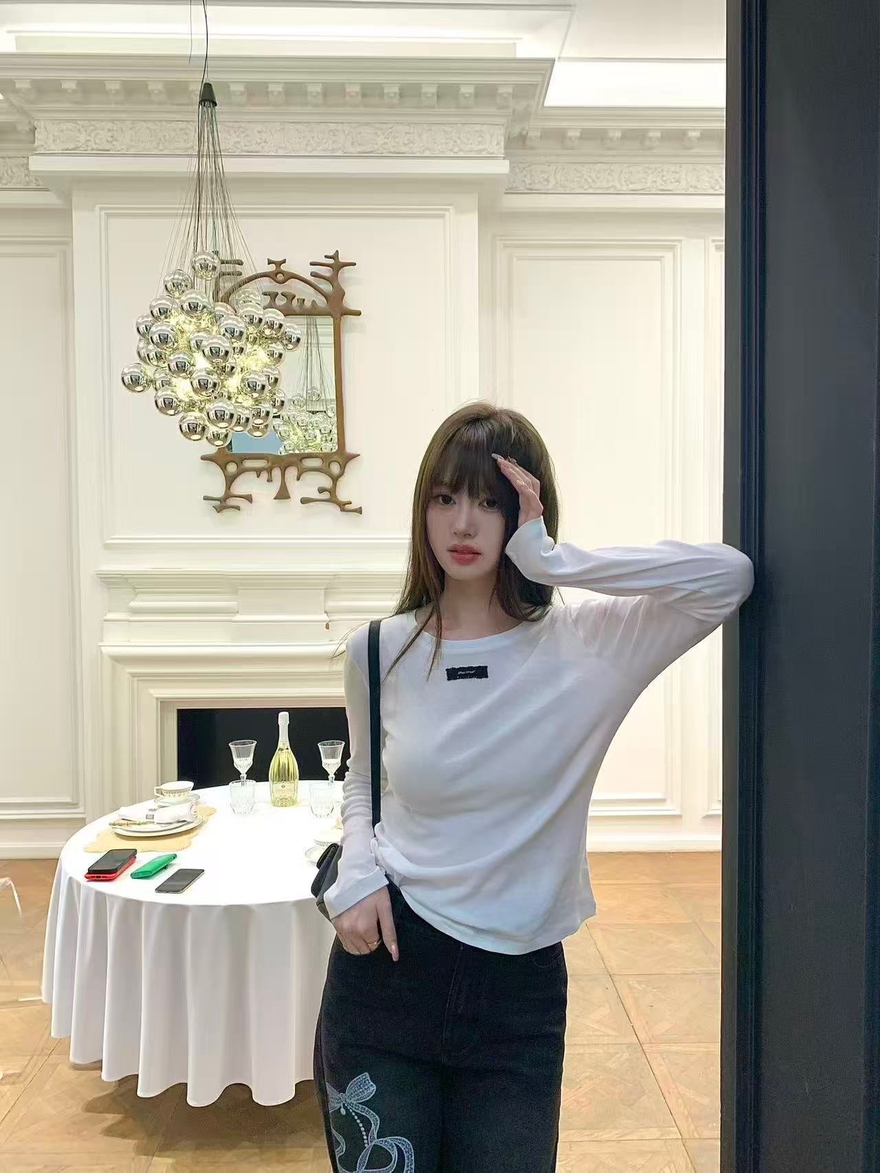 lace tag long sleeve T-shirts