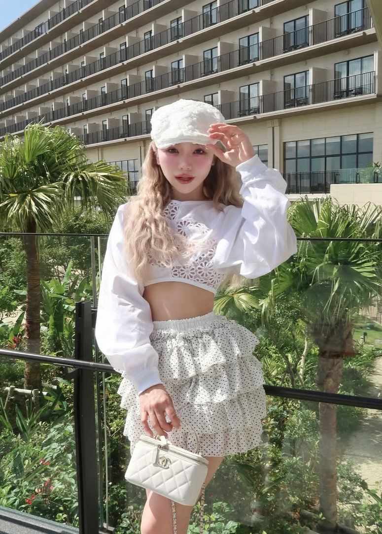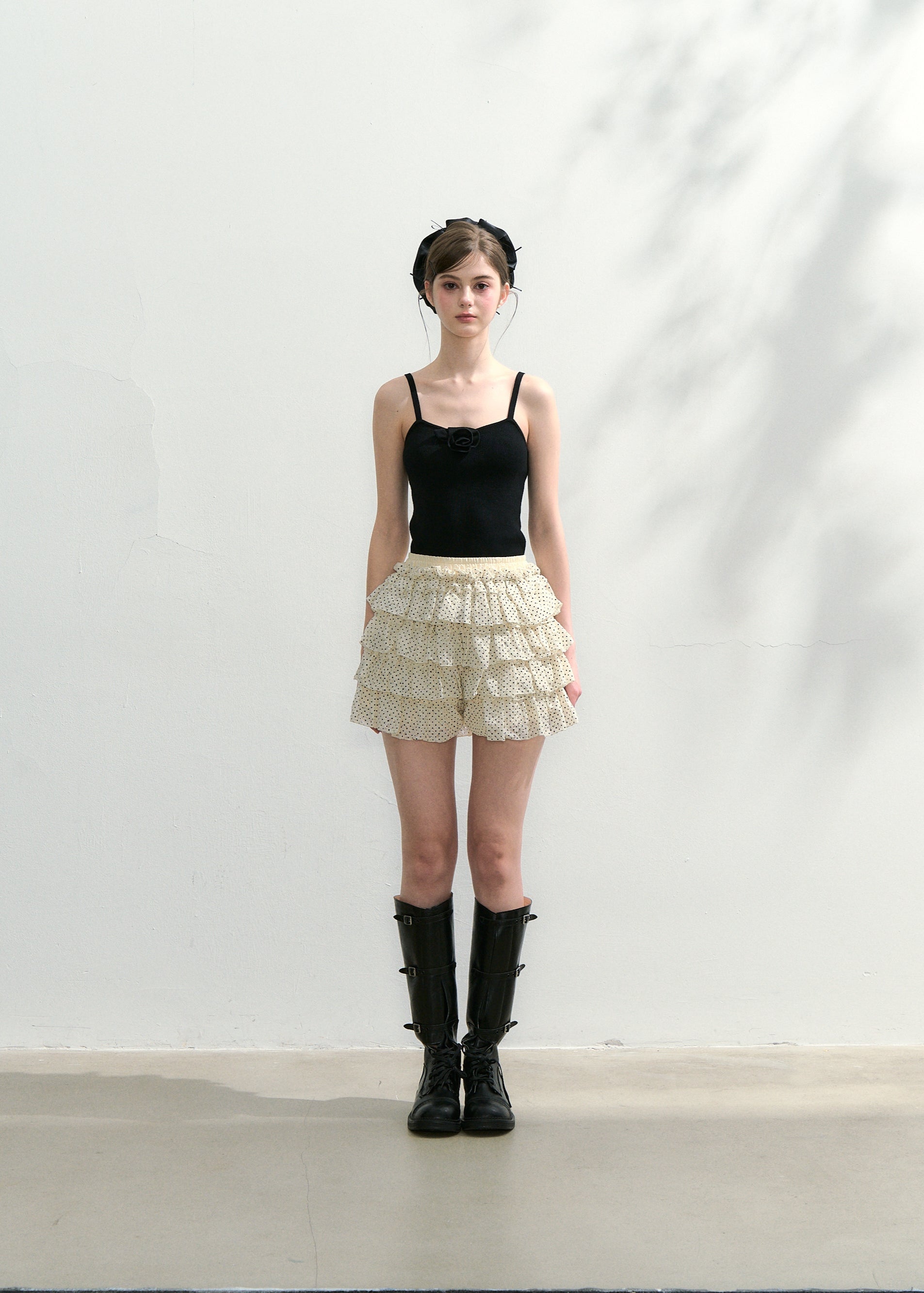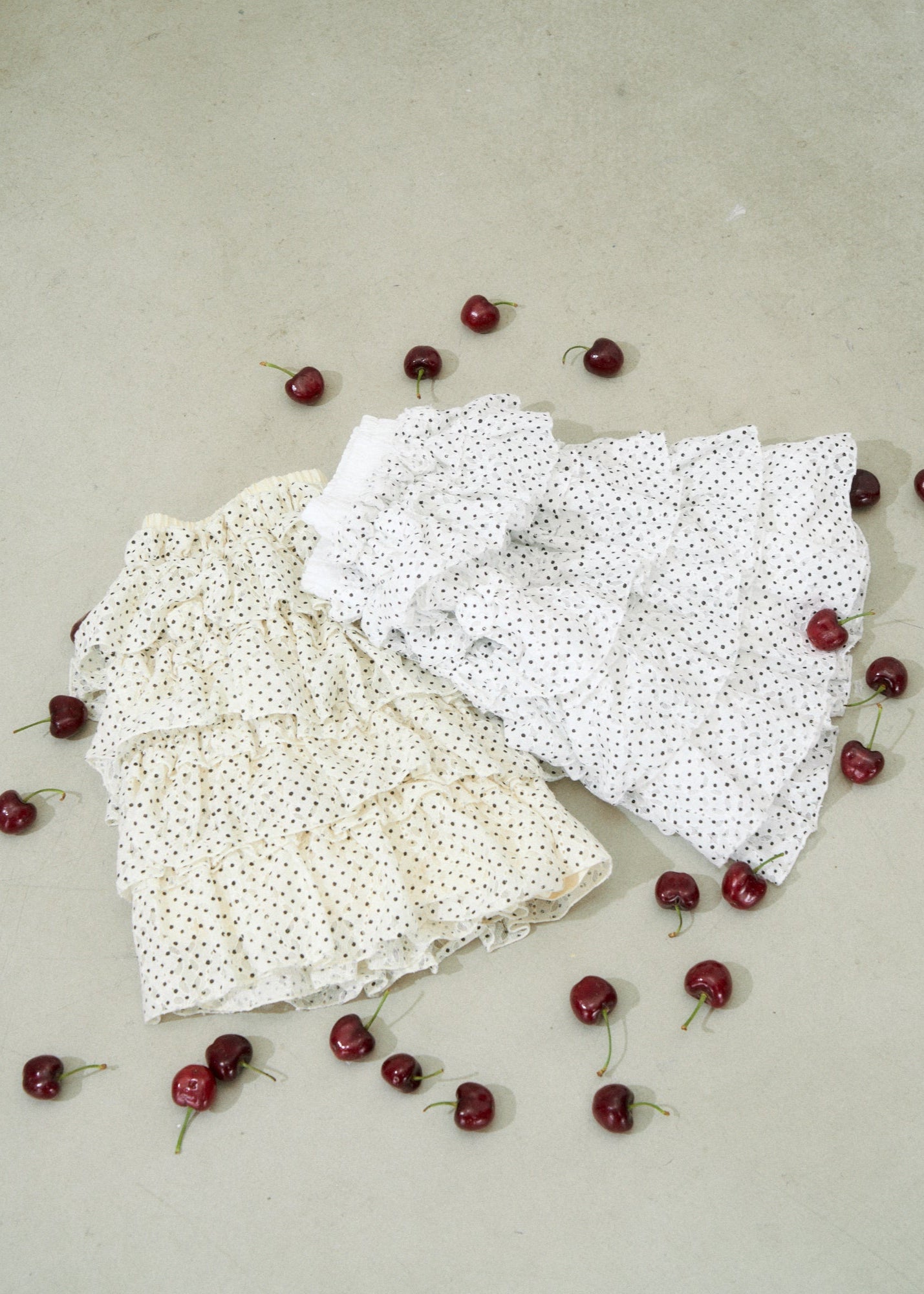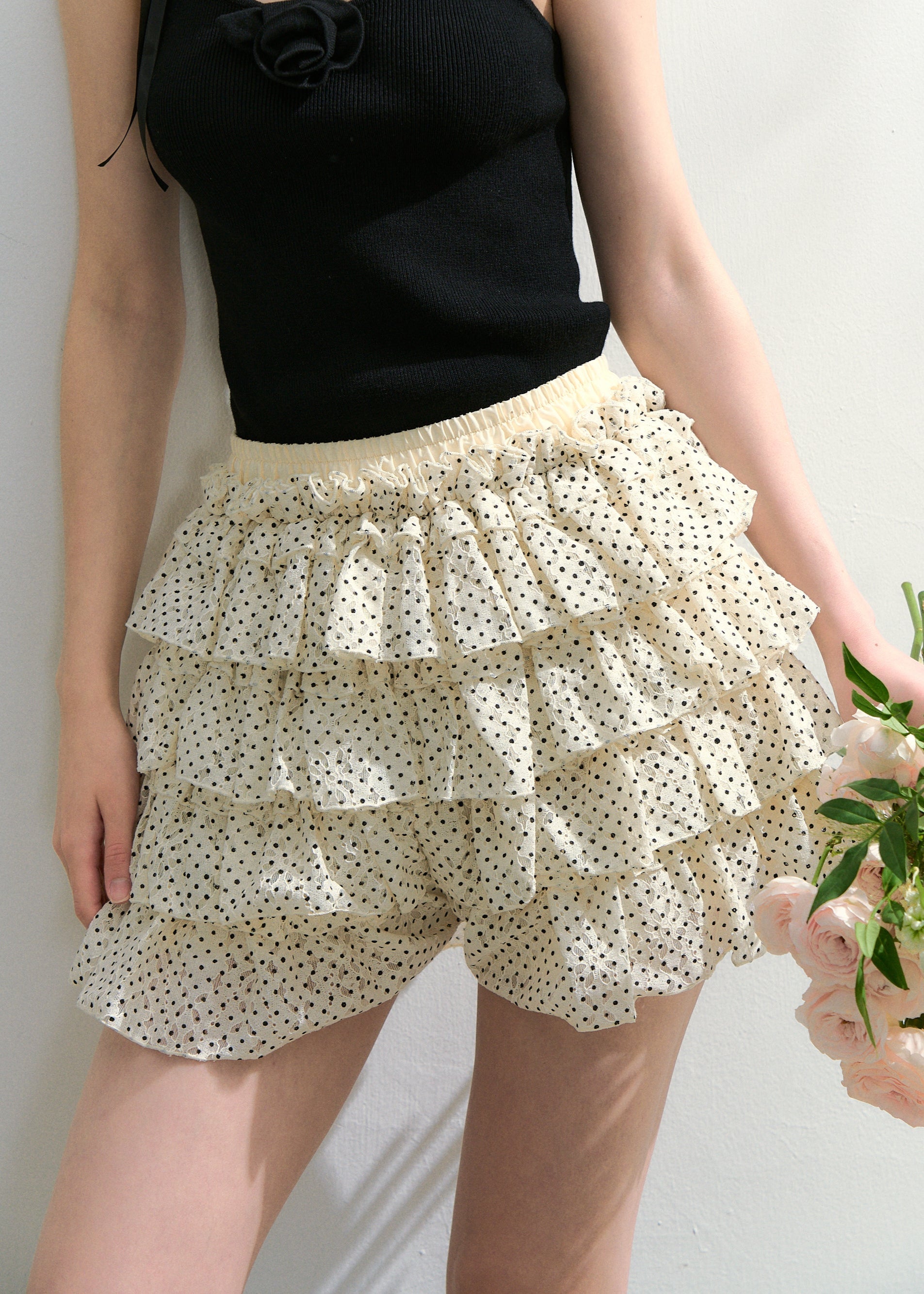 TreatÜrselfの人気アイテム「girly lace tutu」が、異素材の新色で再登場。 花柄レースの生地に、繊細なドットプリントを重ねたこだわりの素材が魅力。 ふんわり広がるシルエットと重なるフリルが、スカートのような華やかさを演出します。 ウエストはゴム仕様で、ストレスフリーな履き心地。 春夏のワードローブにぴったりなwhiteとcreamの2色展開。