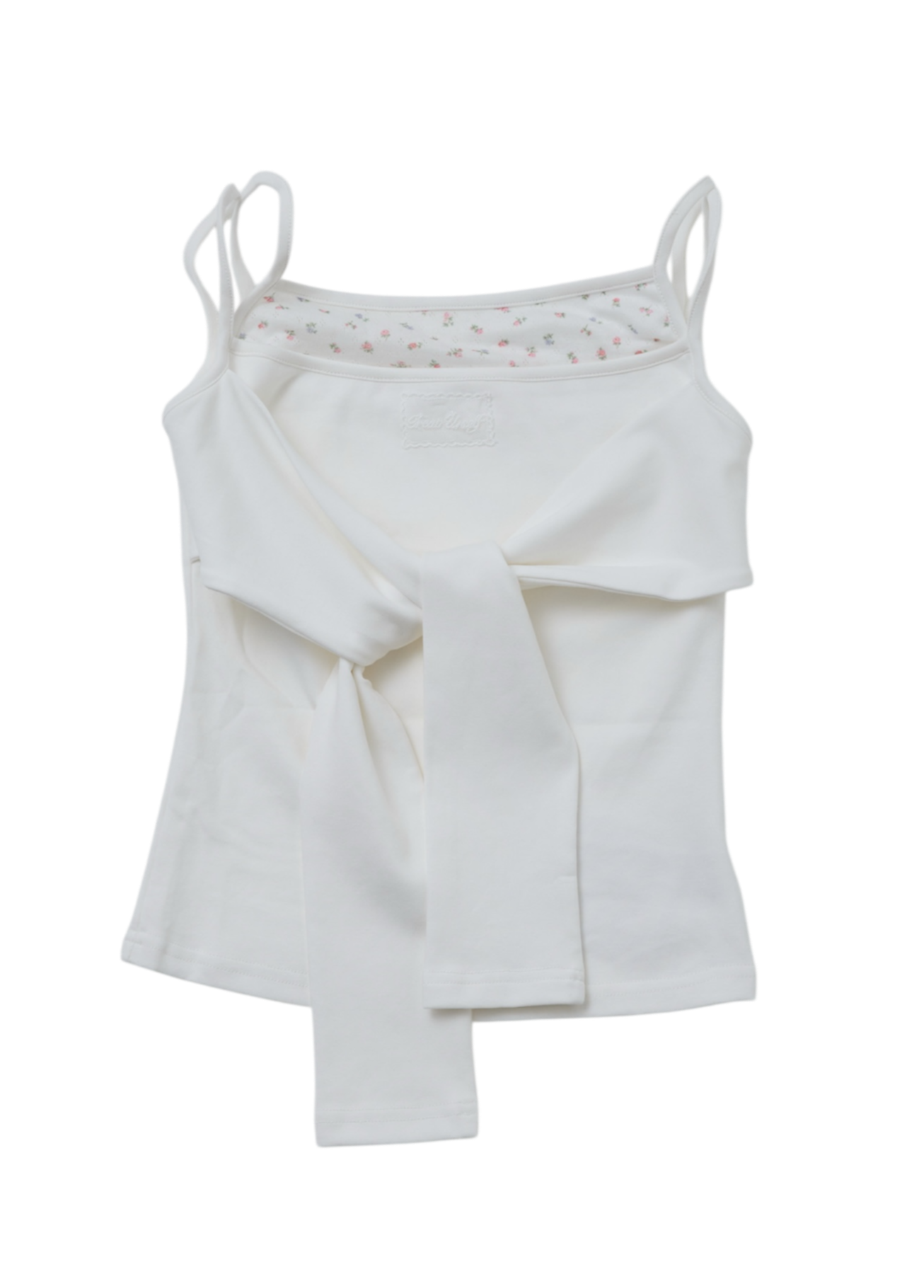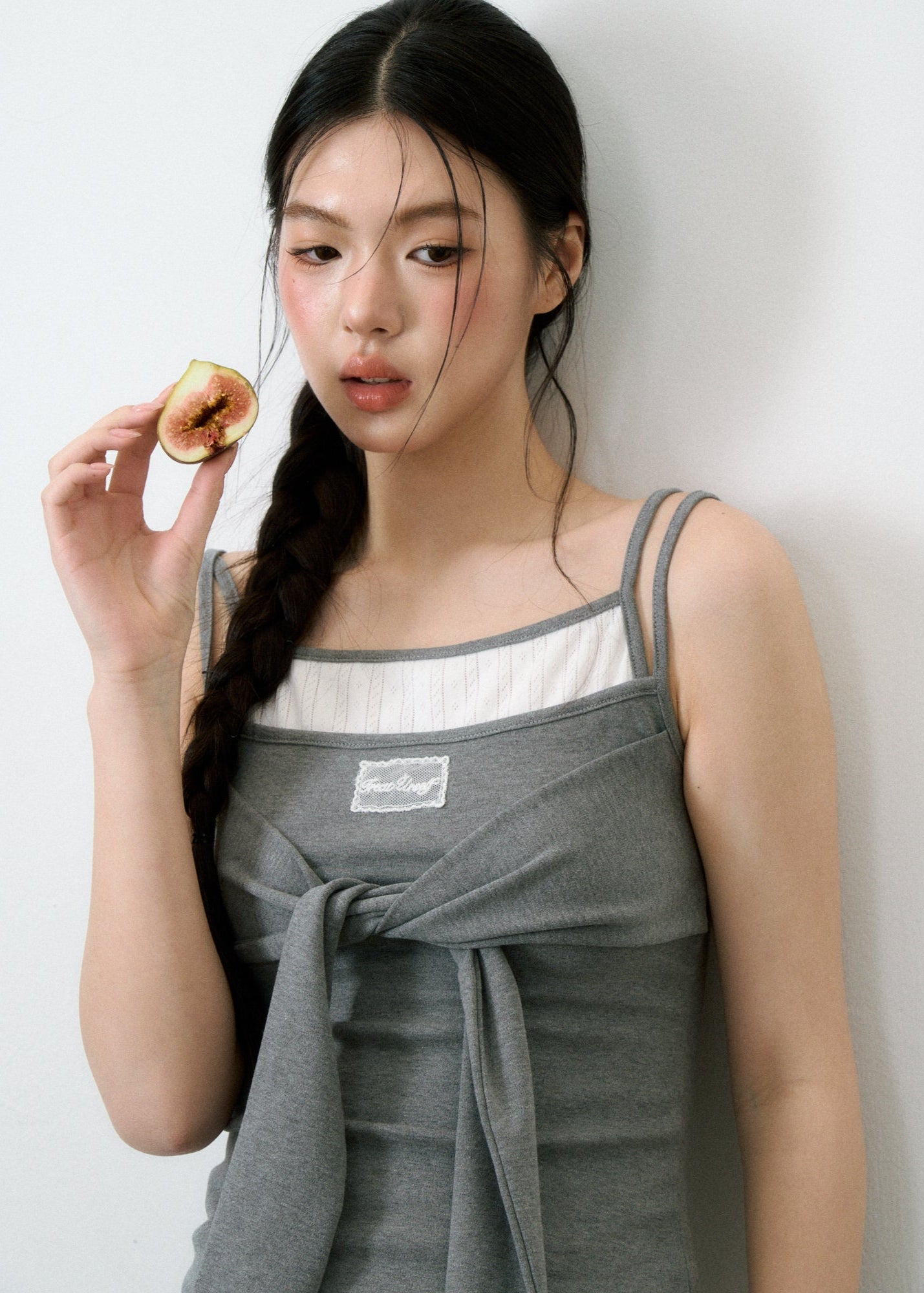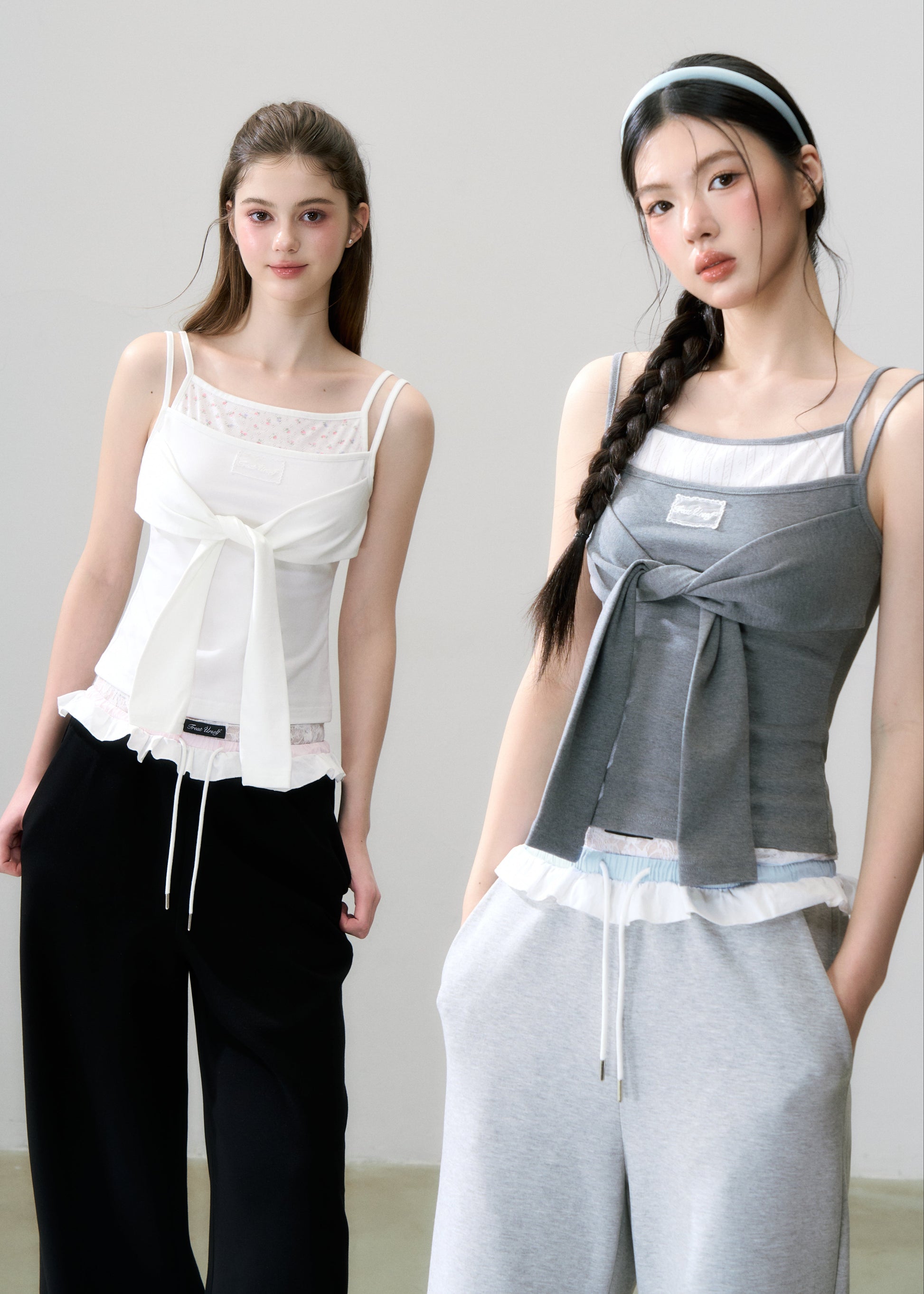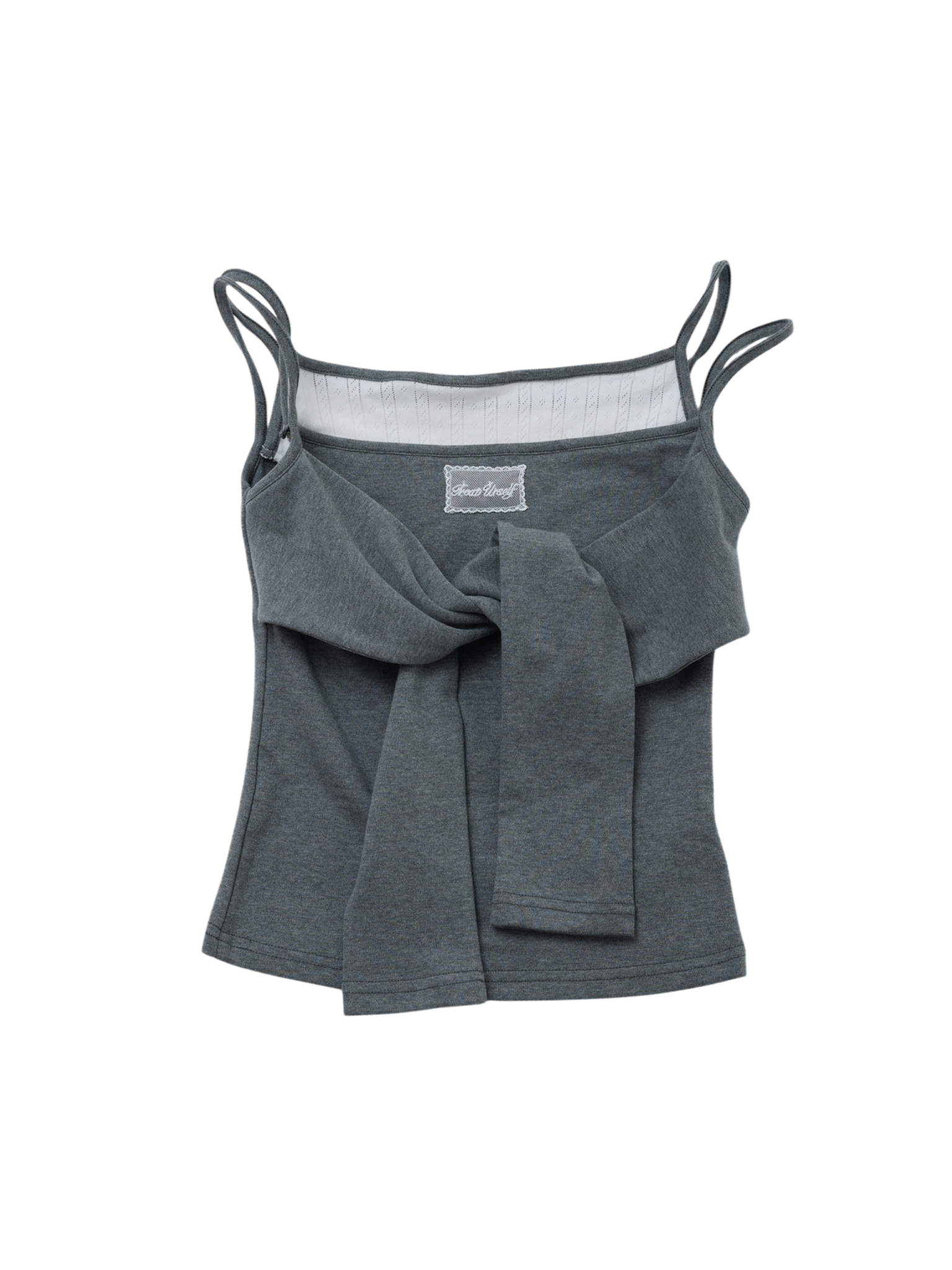 まるで袖を前で結んだようなディティールが目を引く、主役級レイヤード風キャミ。