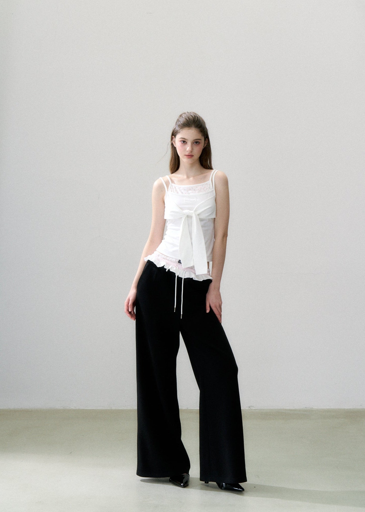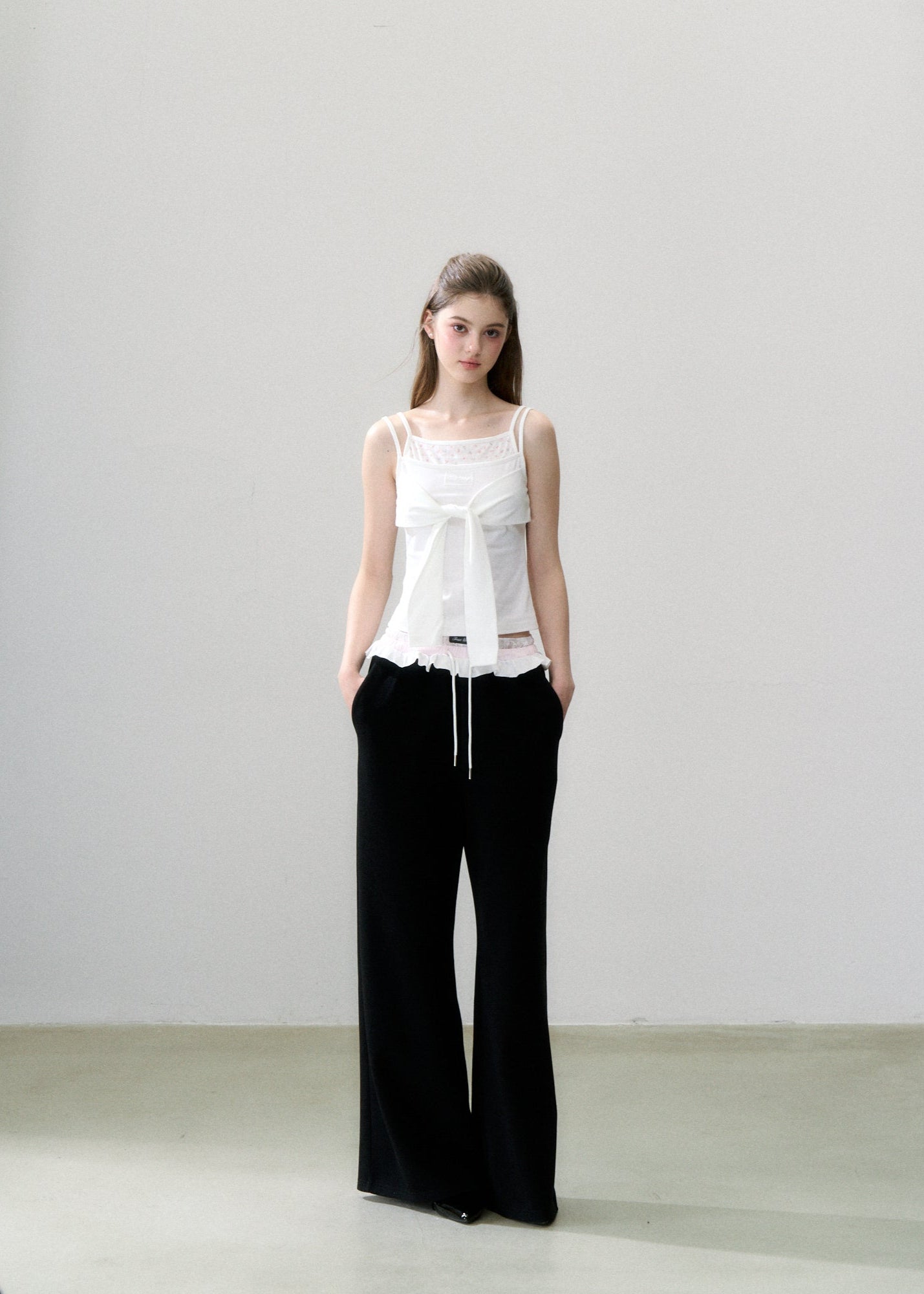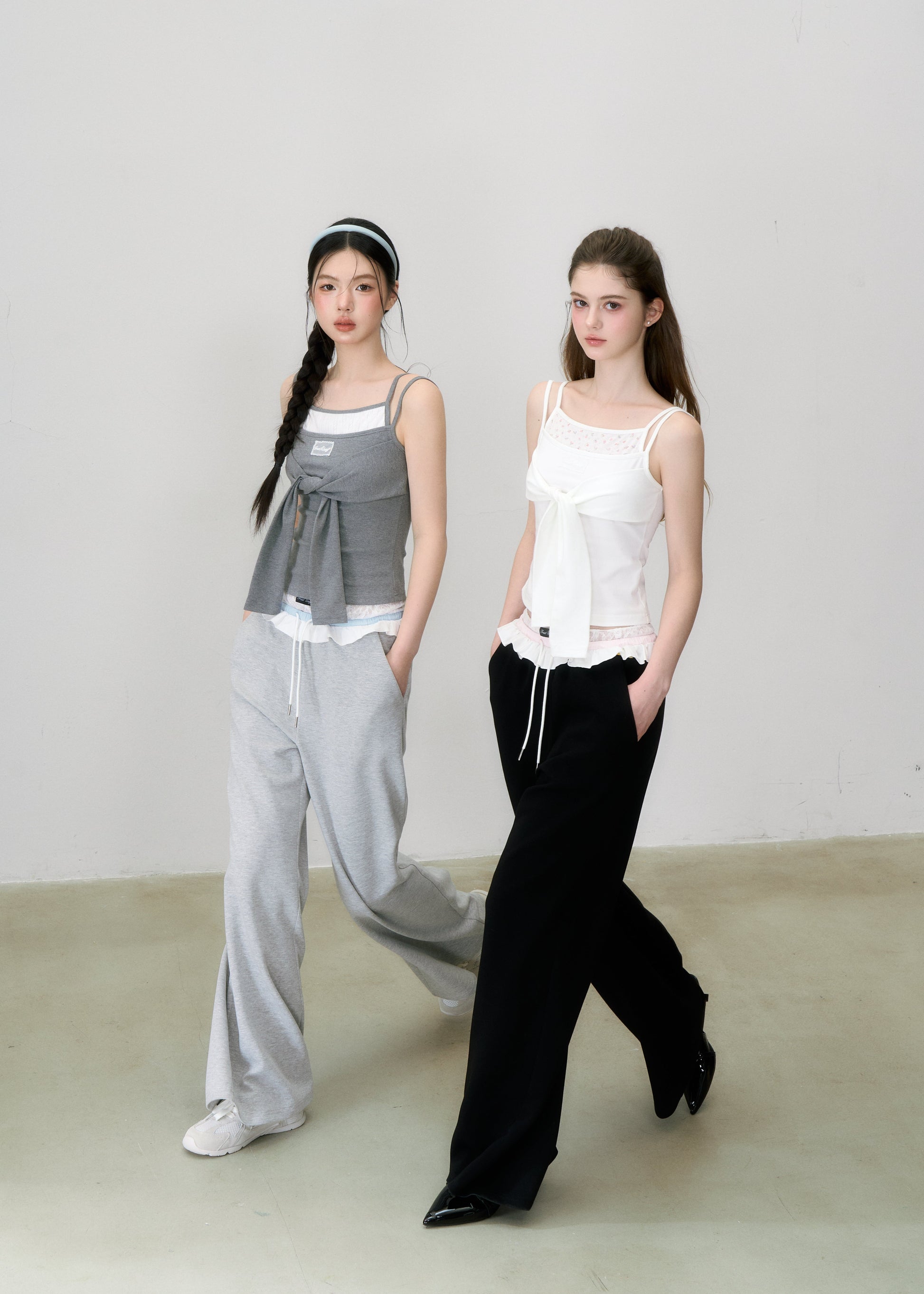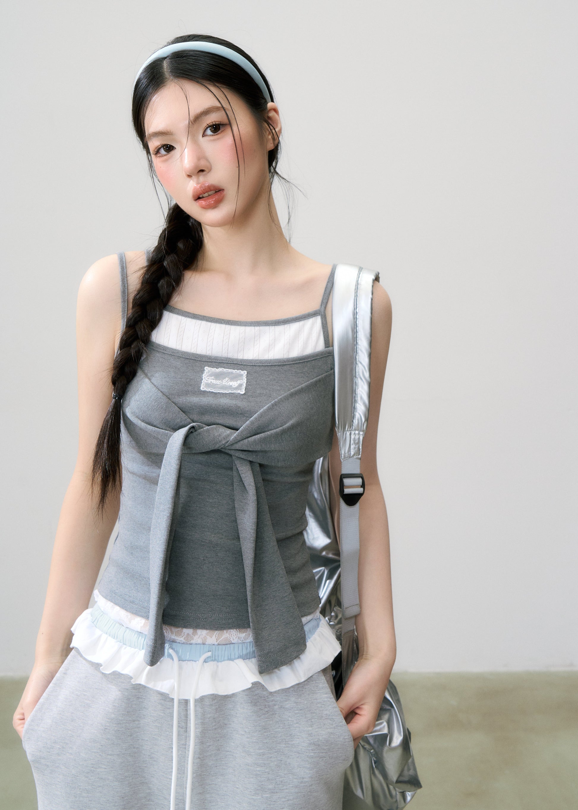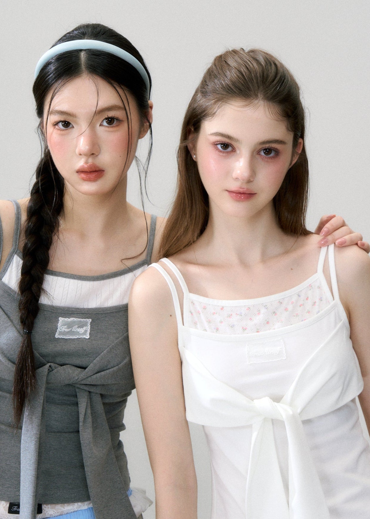 まるで袖を前で結んだようなディティールが目を引く、主役級レイヤード風キャミ。