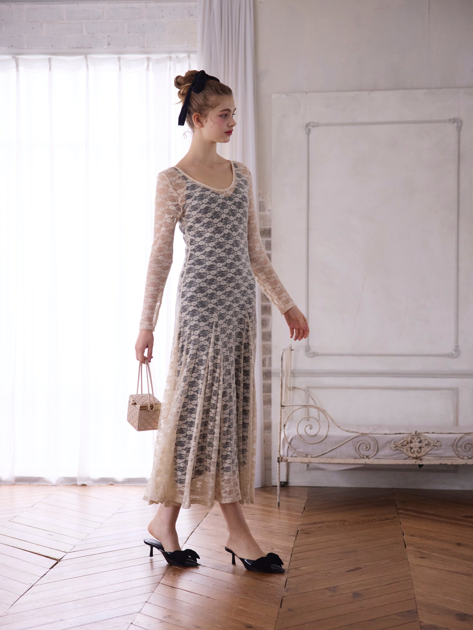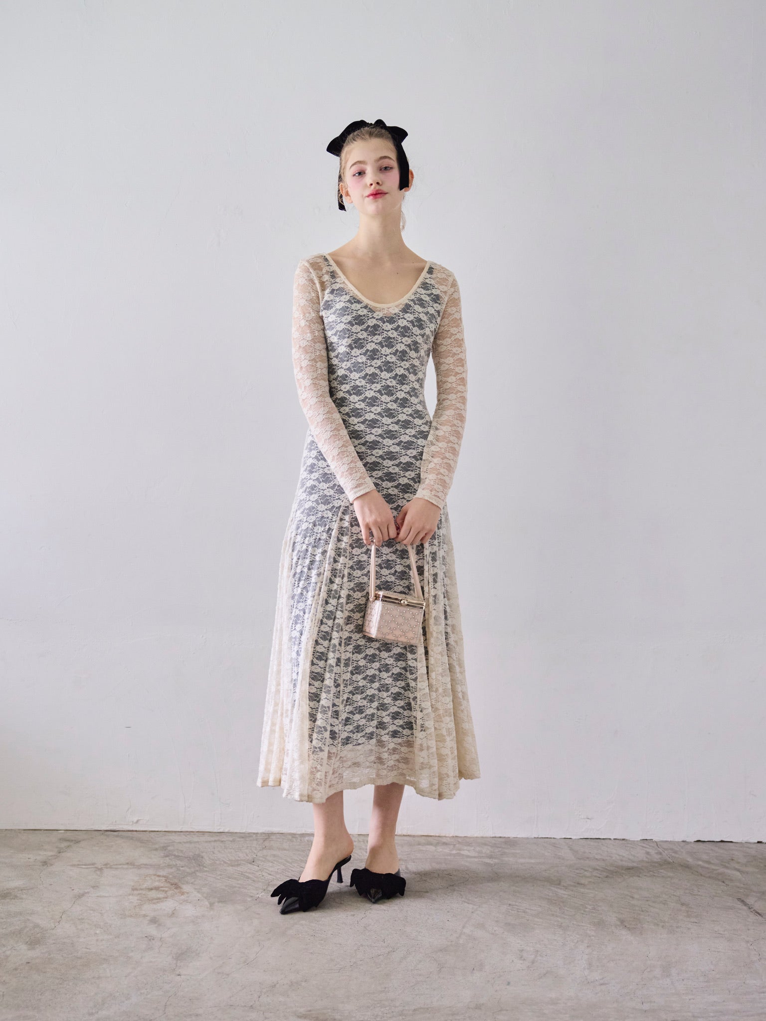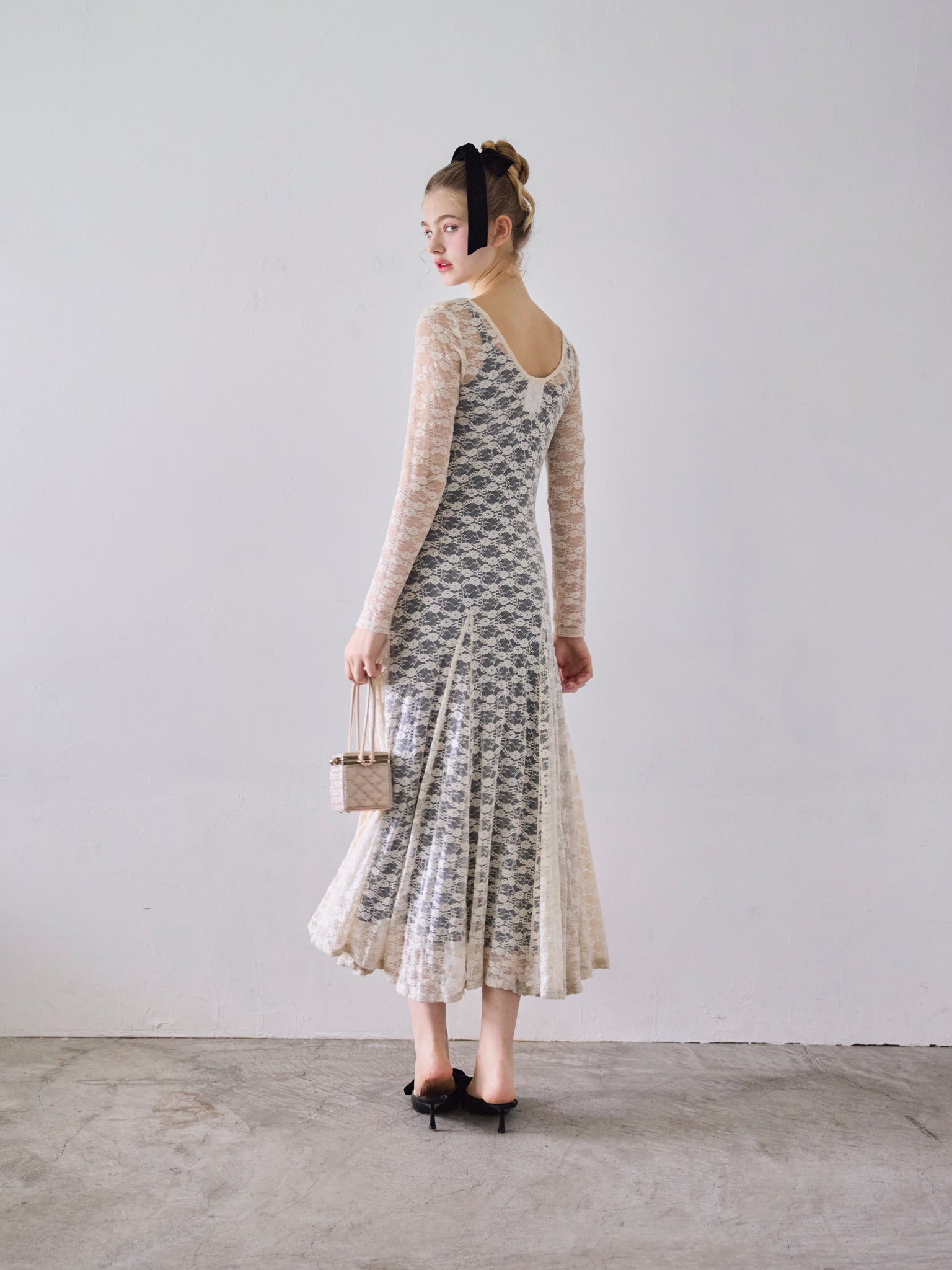 総レースで仕上げた華やかかつシックなワンピース。