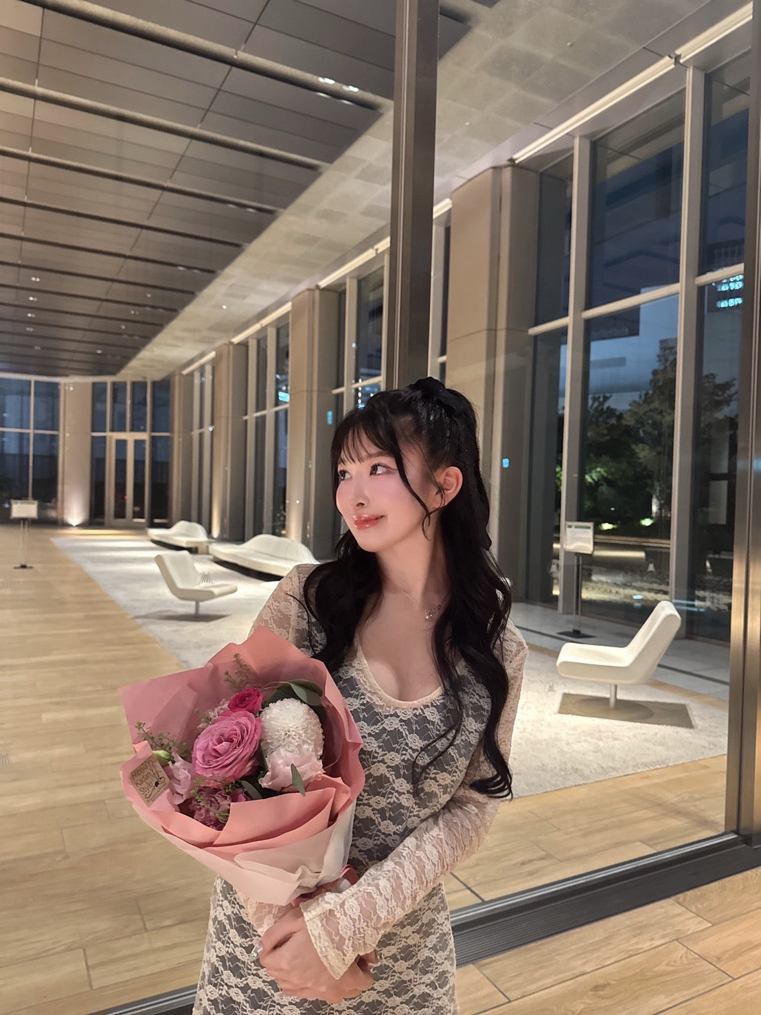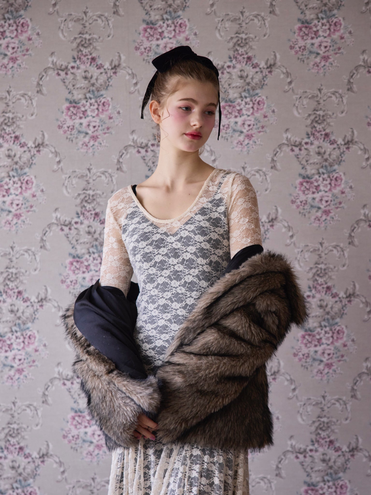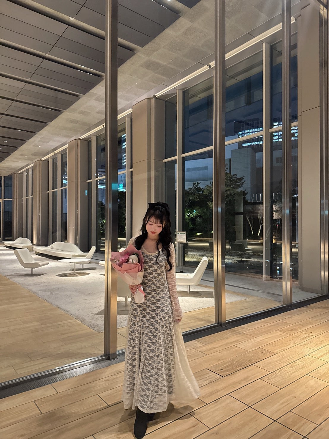 レースから少しのぞかす程よい肌見せで清潔感があり、