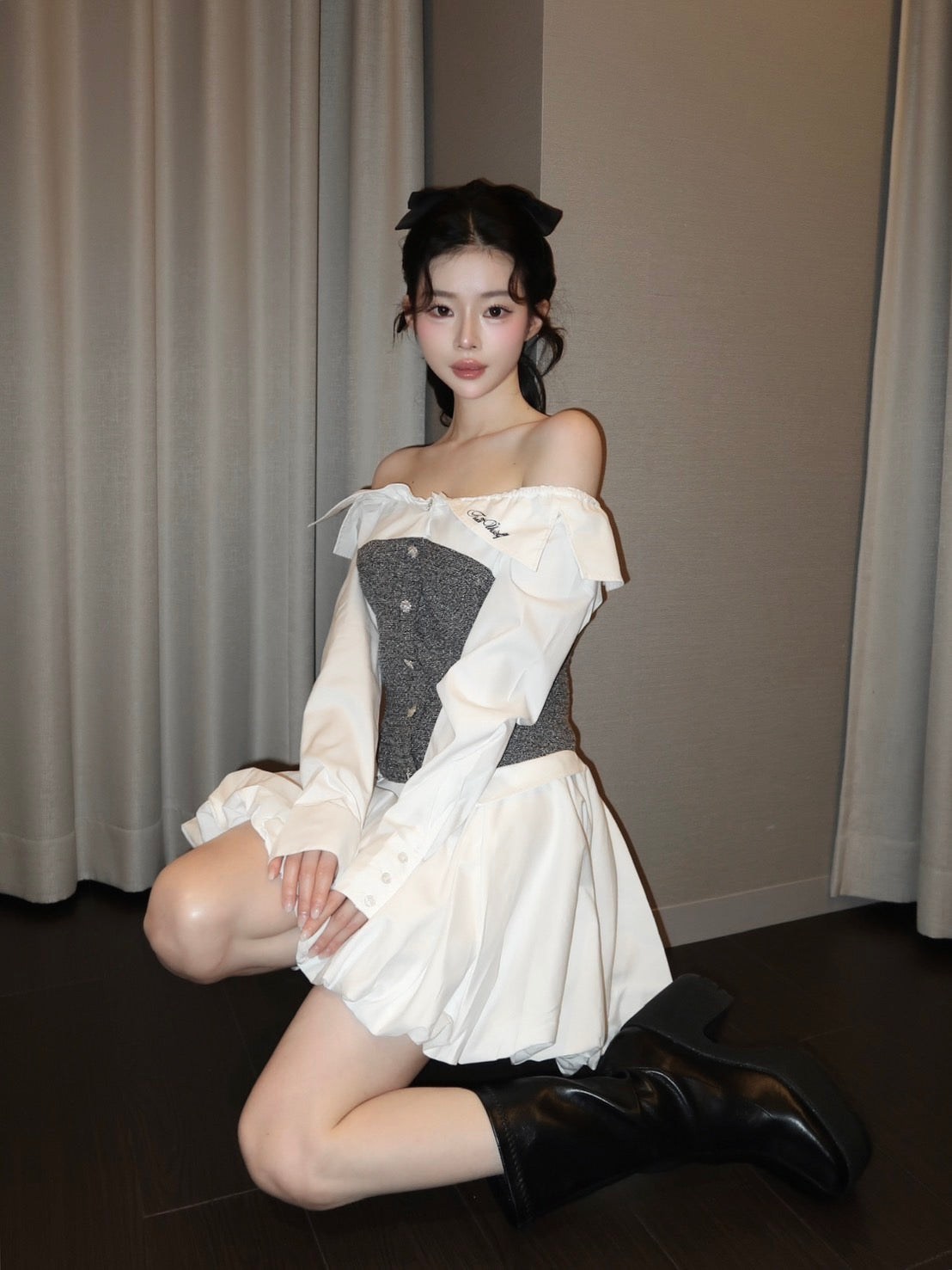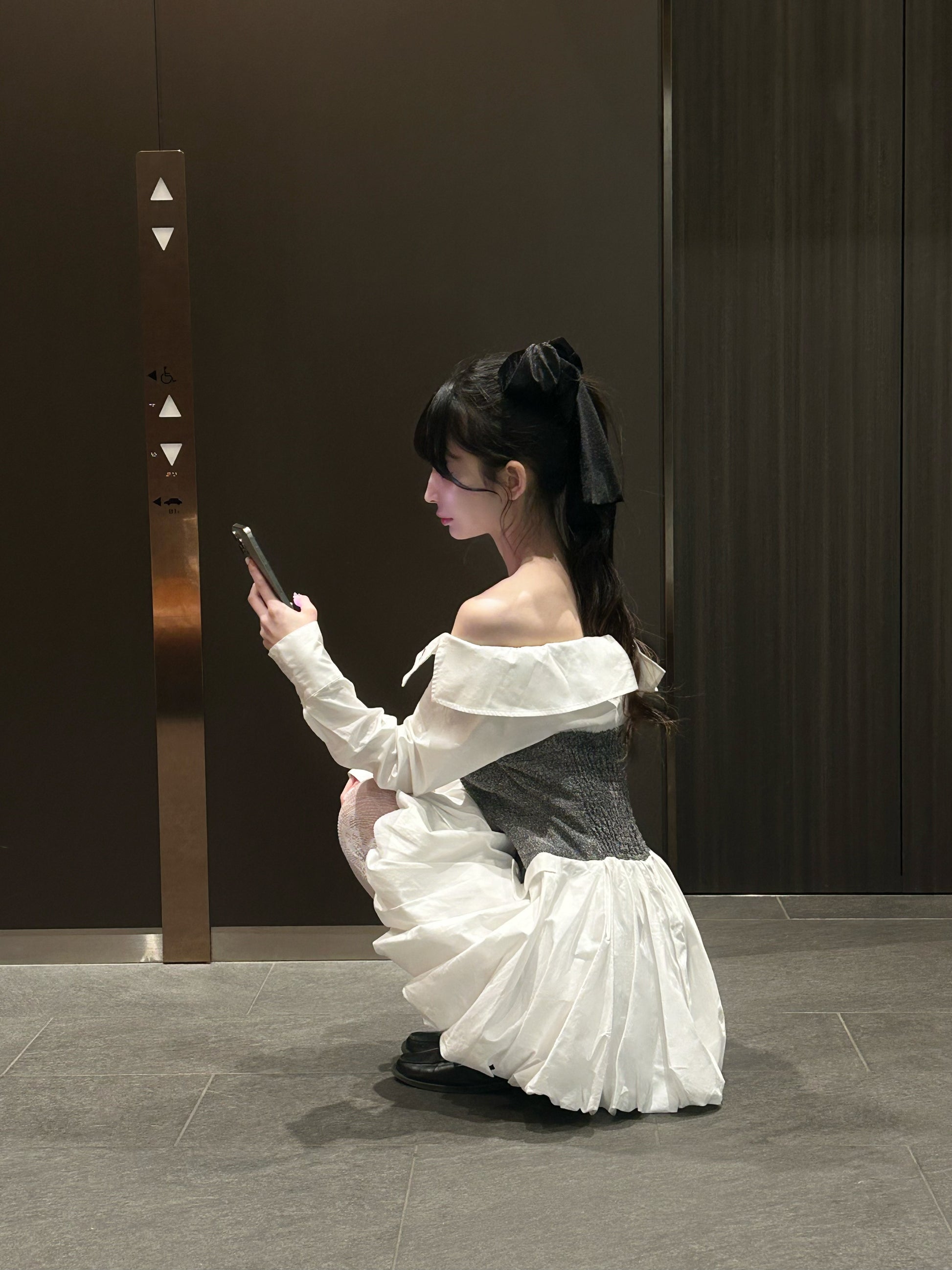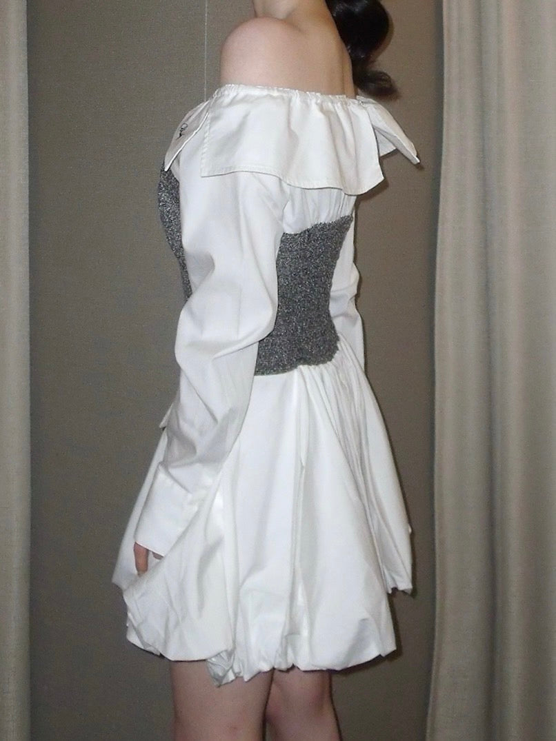 スカートの裾はバルーンシルエットに仕上げ、