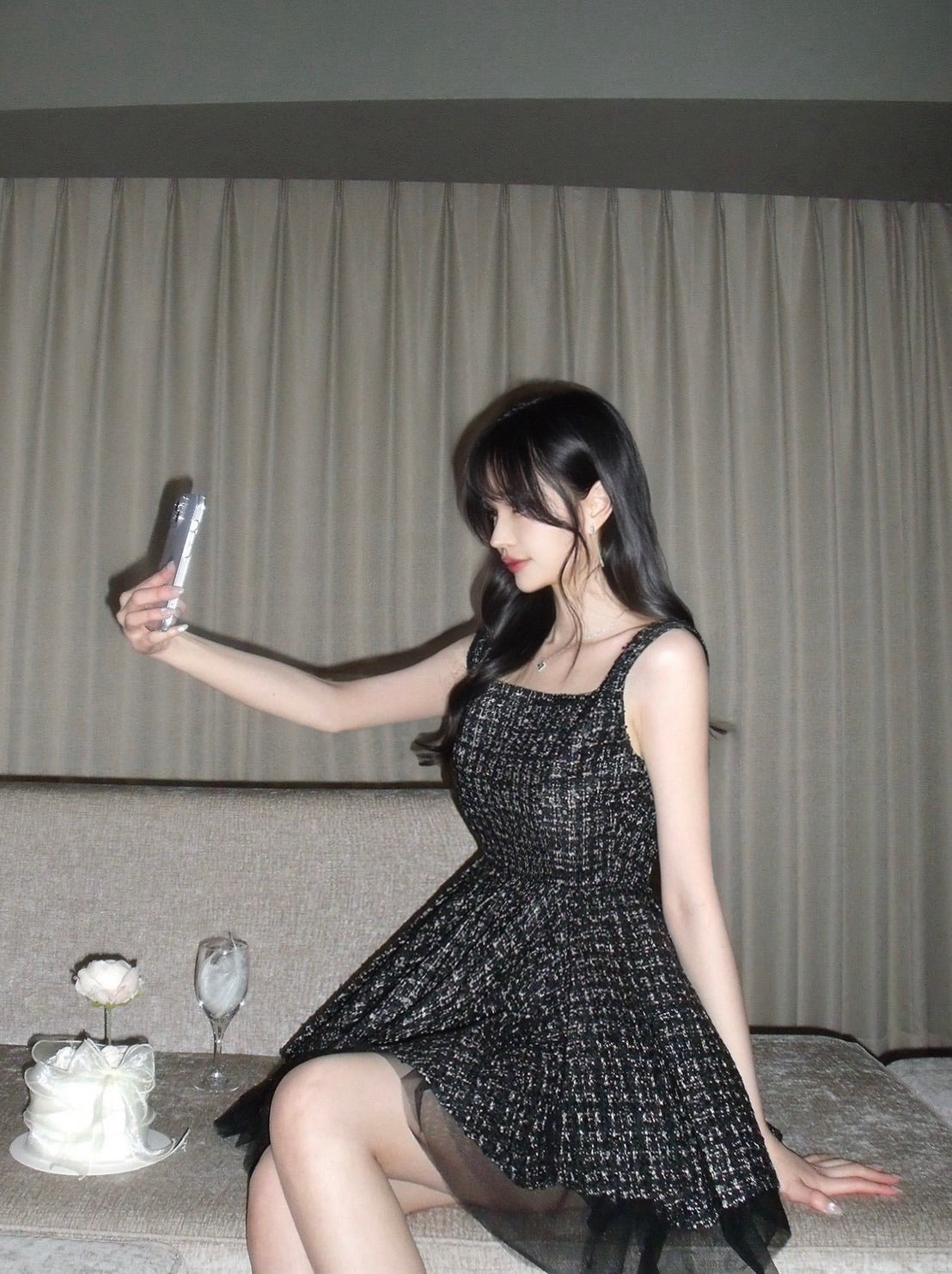 Twilight Tweed Tulle Dress(black)