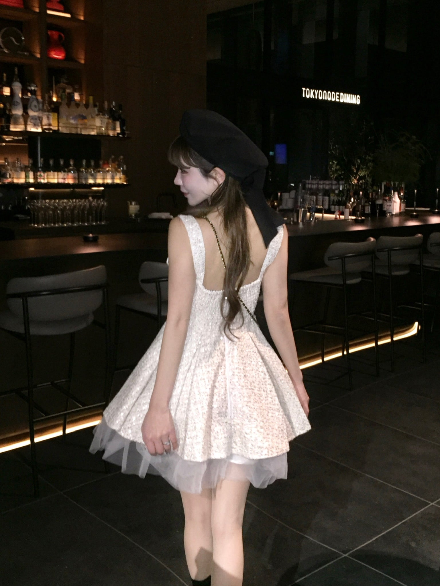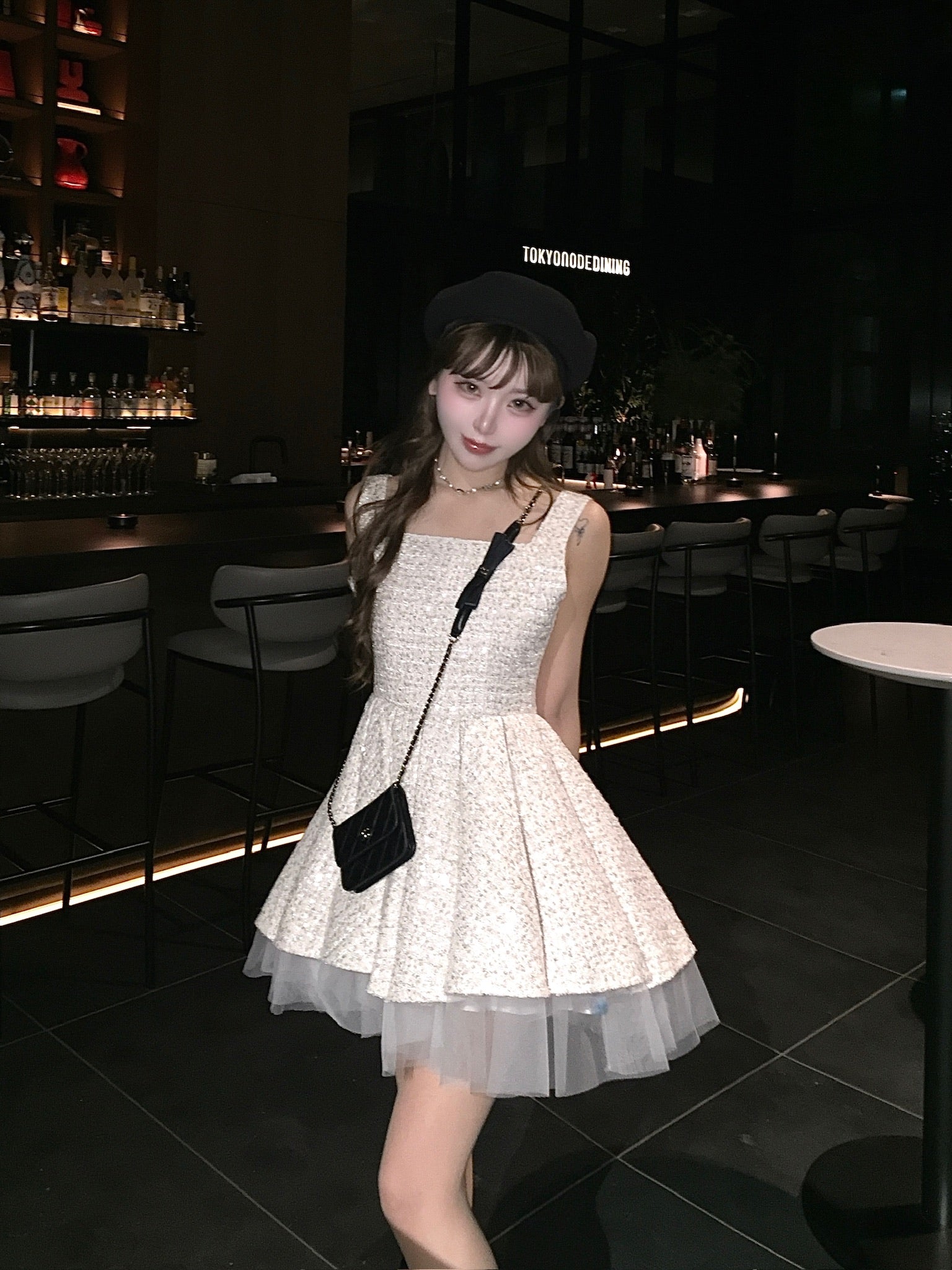 クラシカルなツイードとロマンティックなチュールの組み合わせが、